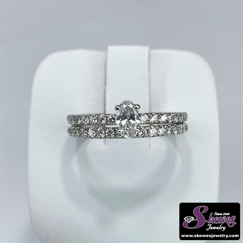 14KW Lab Grown Diamnd Engagement Ring with Oval Center .33 and Wedding Band(.21) Dia TW.75