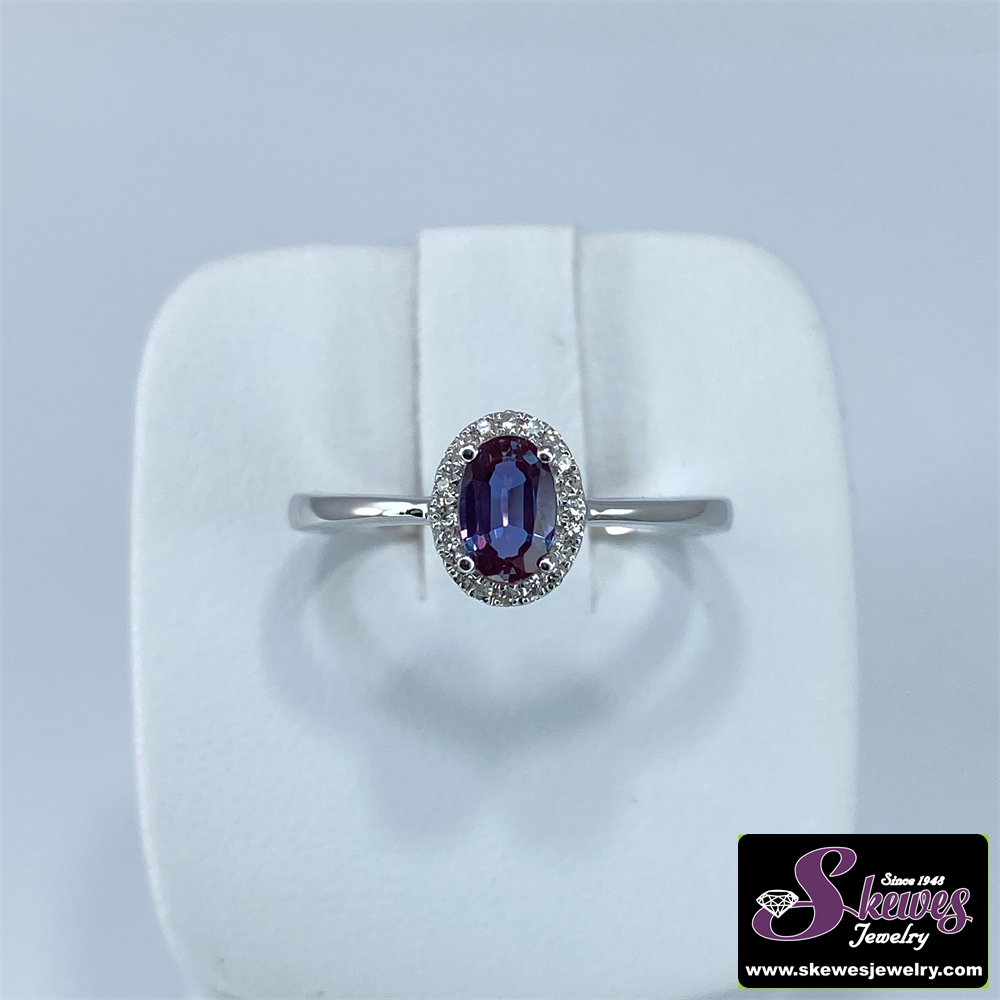 10KW Oval Created Alexandrite Ring with Diamond TW .06