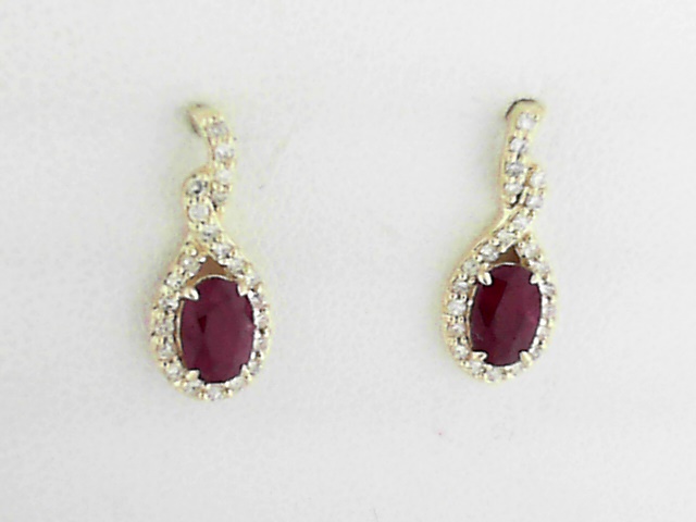 10KY 6x4oval Ruby Earrings with Diamond TW .23ct