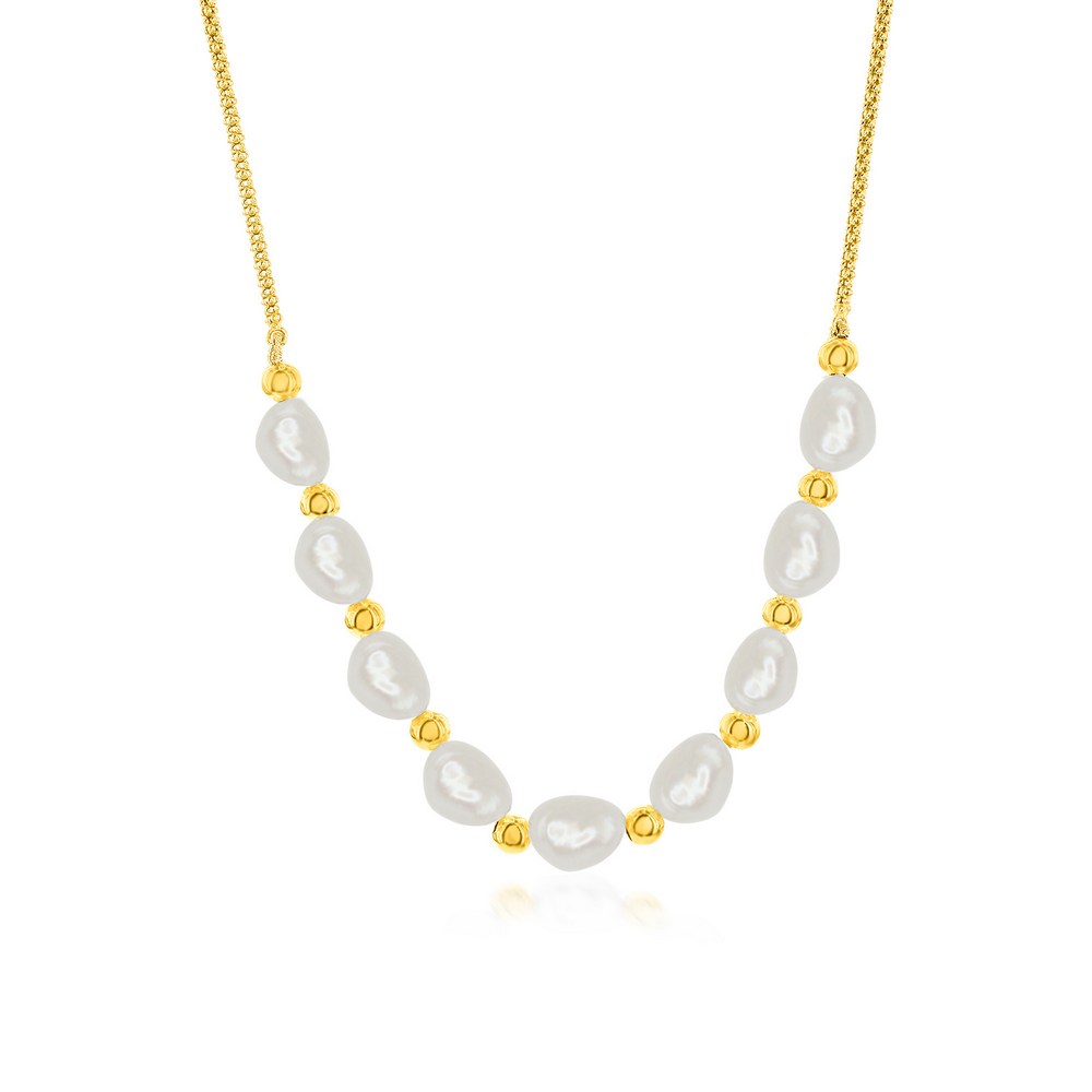 Sterling Silver Gold Plate Freshwater Pearl and Bead Necklace