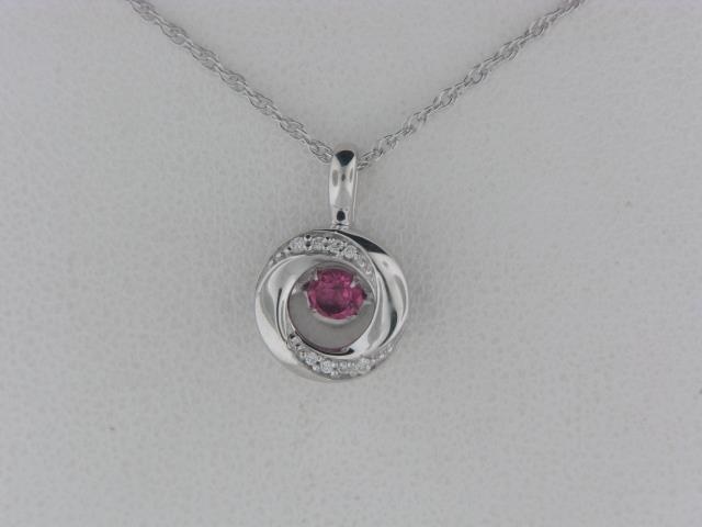 Sterling Silver Shimmering Diamonds Pendant with Pink Tourmaline and Dia TW .03