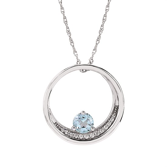 Sterling Silver Aquamarine Pendant with Dia TW .06