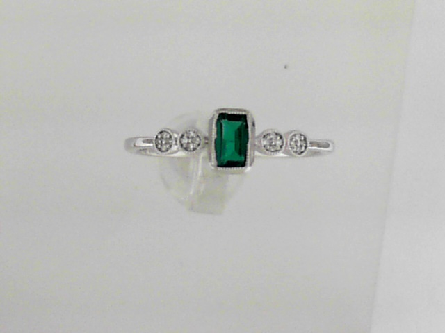 Sterling Silver Lab Grown Emerald and Natural Diamond Ring TW .03