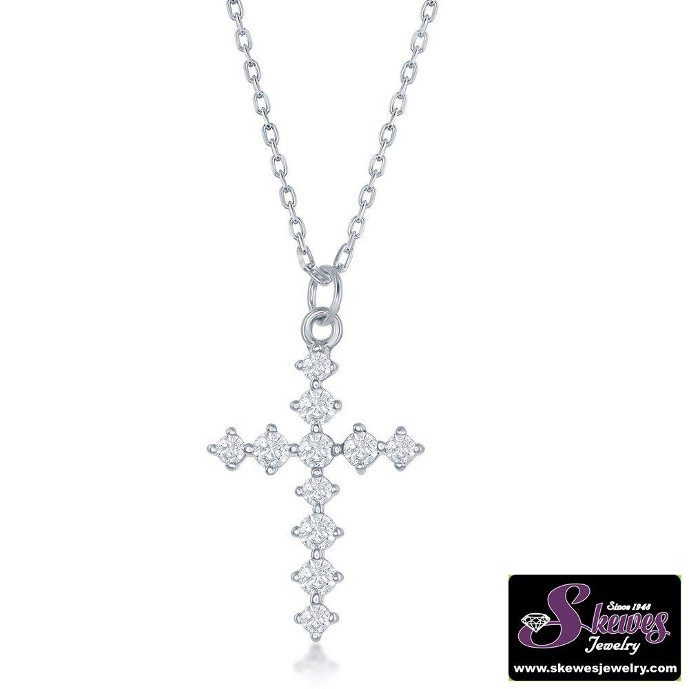 Sterling Silver CZ Cross Necklace