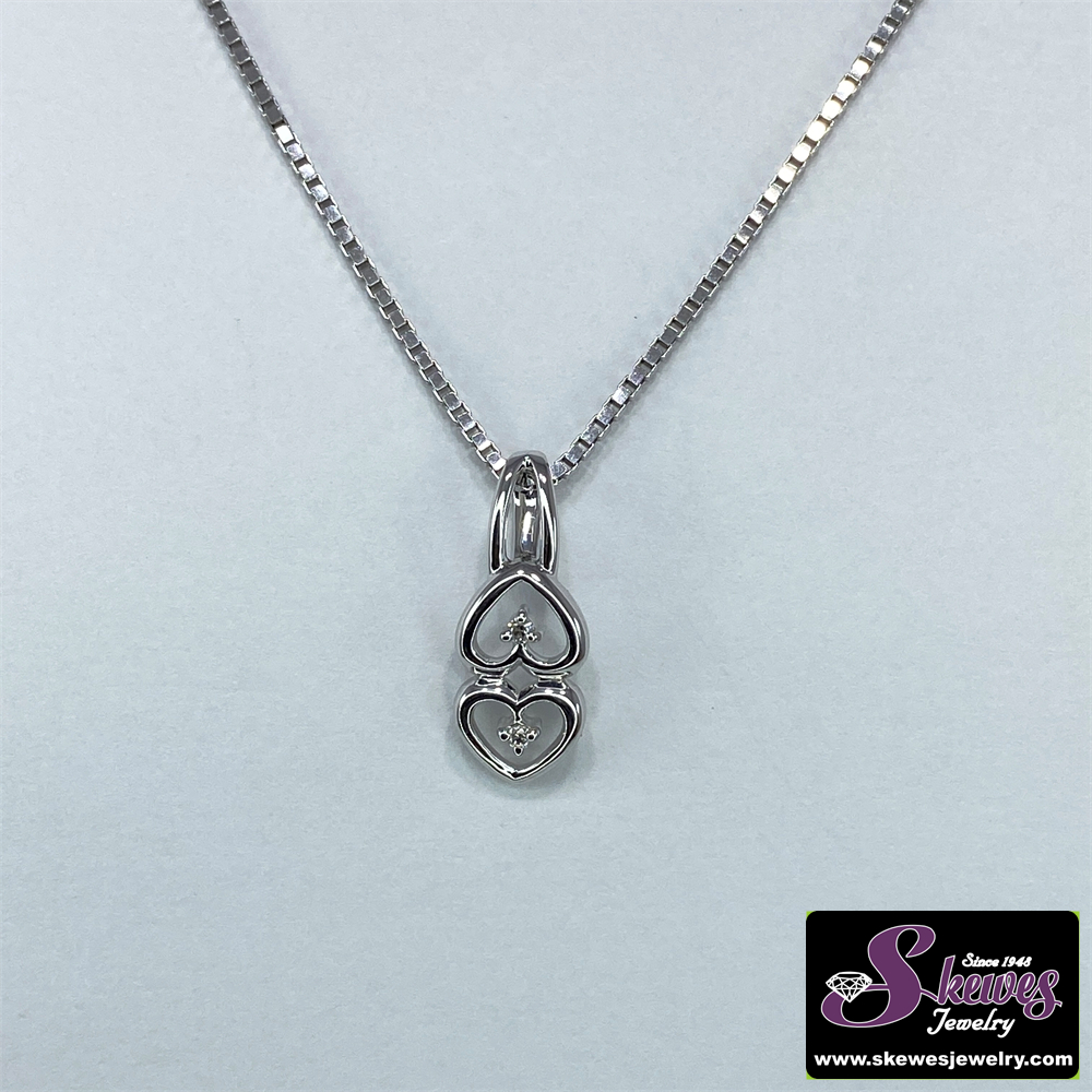 Sterling silver double heart Pendant with dia TW .02