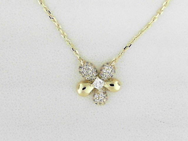 Sterling silver Polished and CZ Flower Neckalce – Gold Plated