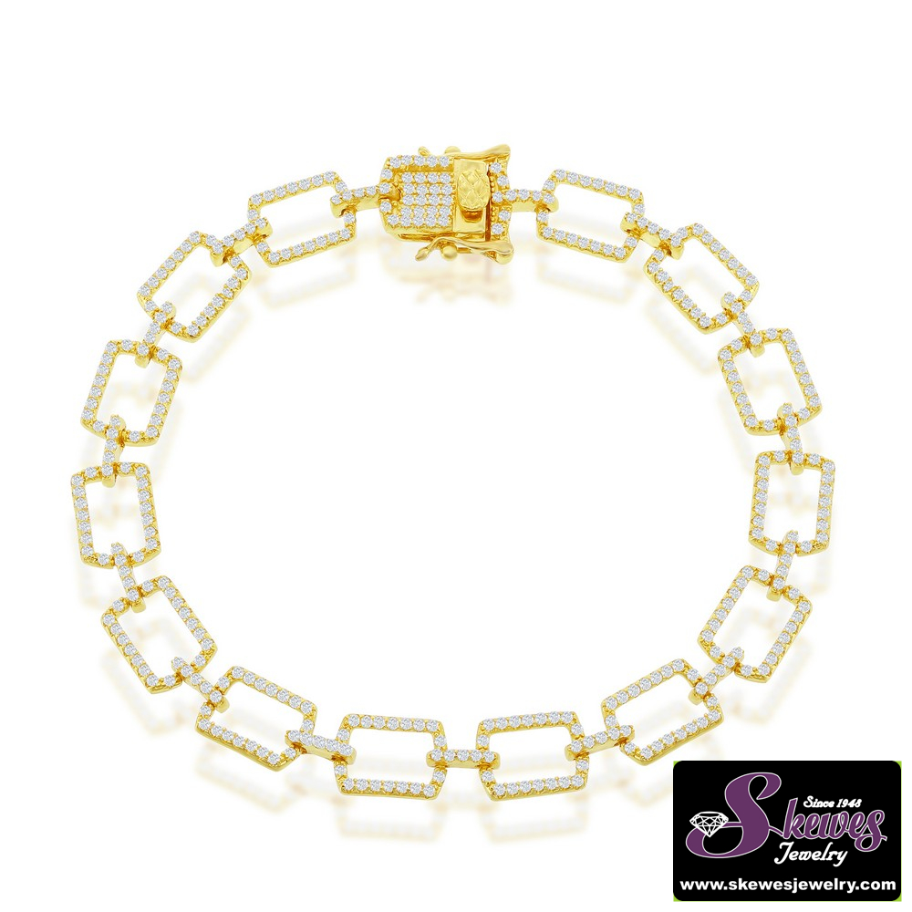 Sterling Silver/GP 7.5″ CZ paperclip Design Bracelet
