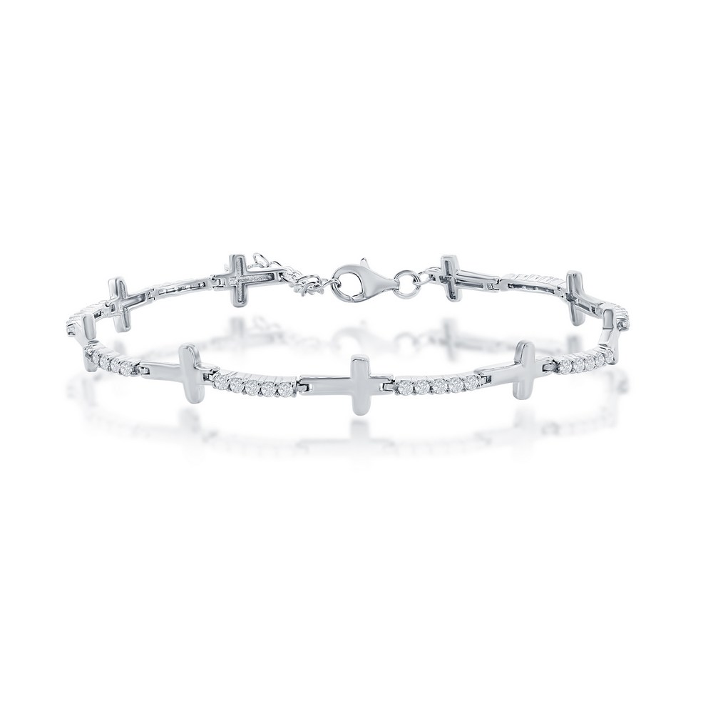 Sterling Silver Sideways Cross and CZ Bracelet